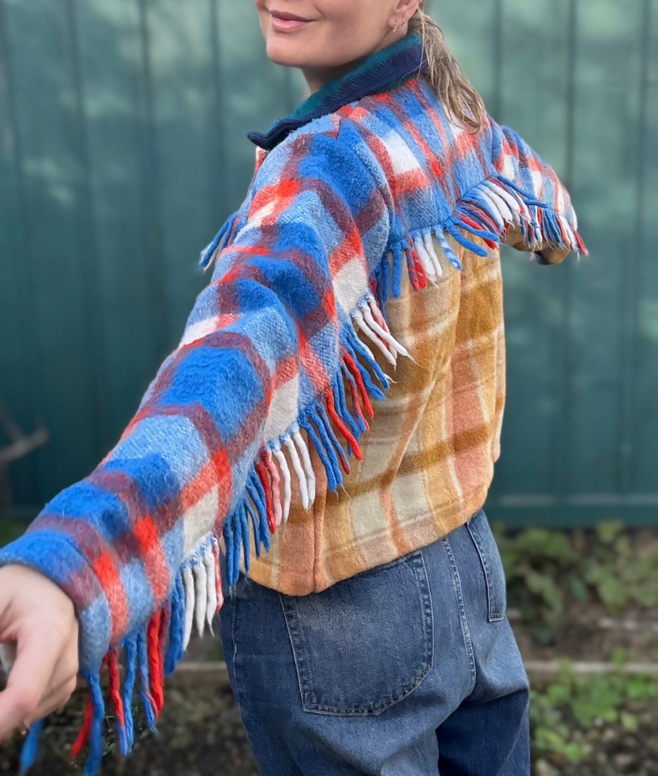 Each piece is cut from carefully sourced wool and wool-blend blankets dating from the 1950s through to the early 2000s. No two jackets are the same, each one celebrates the character, weight and pattern of its original textile.