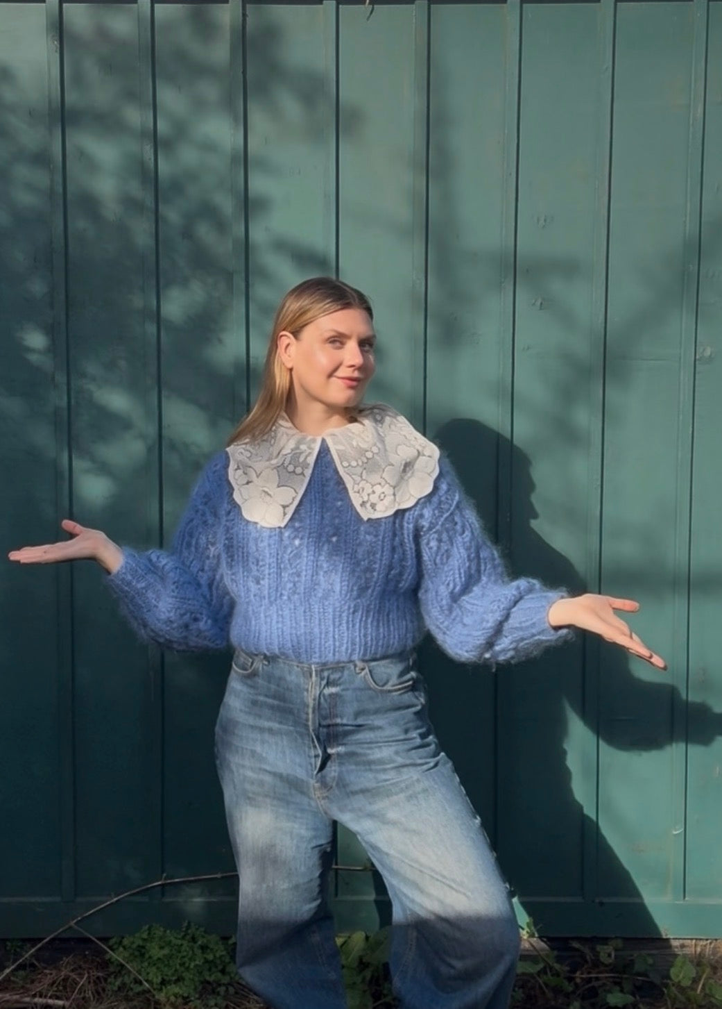 Wear it loosely at the waist over denim or tailoring as a romantic lace wrap. Pull the drawstring tighter and layer it under knitwear as a dramatic lace collar. Or drape it across the shoulders and tie at the front for a soft shawl-style layer.